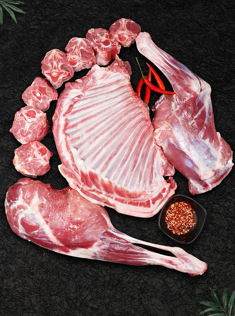 东乡贡羊具有天然生态、绿色低碳、用兽药少等特点。经检测,羊肉中瘦肉精、抗生素、磺胺类药、重金属等全部检测指标均符合《绿色食品 畜肉NY/T 2799-2015》中相应项要求,达到绿色肉品品质标准。东乡贡羊肉颜色鲜红,肉色介于小尾寒羊和湖羊之间,比小尾寒羊高1.71,比湖羊低4.32;保水性好,肉质鲜嫩,含水率74.73%,比同类产品高4.92%,蒸煮损失37.52%,比小尾寒羊、湖羊分别低4.32%和3.17%;脂肪呈乳白色,分布均匀,肌纤维清晰致密,富有弹性;煮沸的肉汤透明澄清,脂肪团聚于液面,肉味鲜美,具有羊肉特有的香味,是生产羊肉美食的良好原料。
