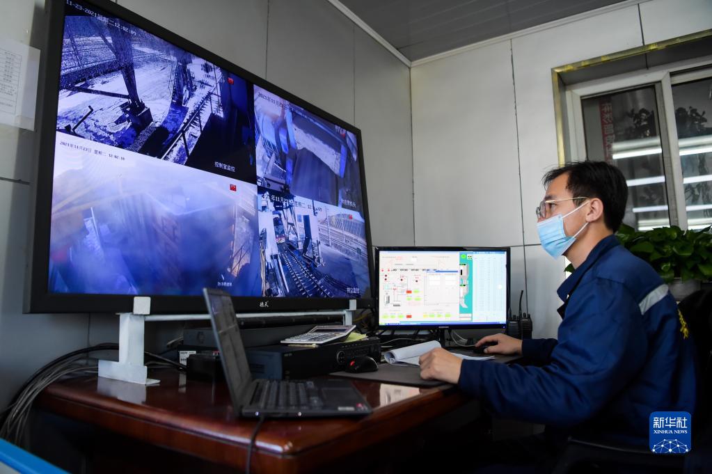 11月23日,在位于鄂尔多斯市的淮河能源西部煤电集团色连二矿罕台川集装站,工作人员在监控装煤设备运行情况。 新华社记者 李志鹏 摄
